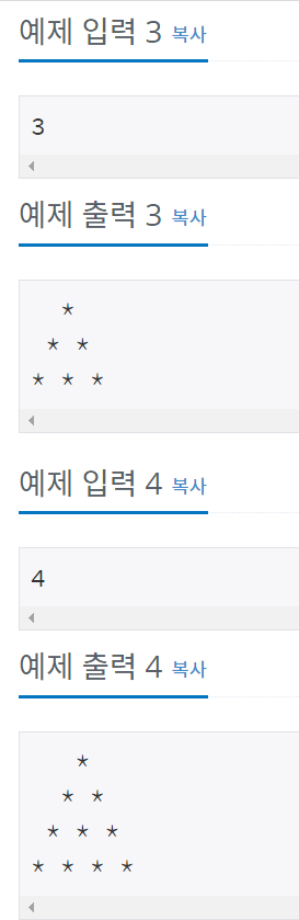 첫째 줄부터 N번째 줄까지 차례대로 별을 출력한다.