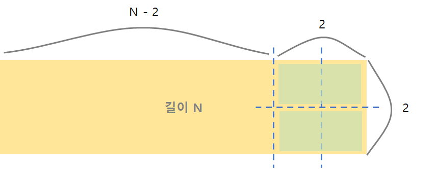 N - 2일 때는 두 가지의 방법이 존재함을 알 수 있습니다.N - 2일 때 첫 번째 방법 두 번째 방법