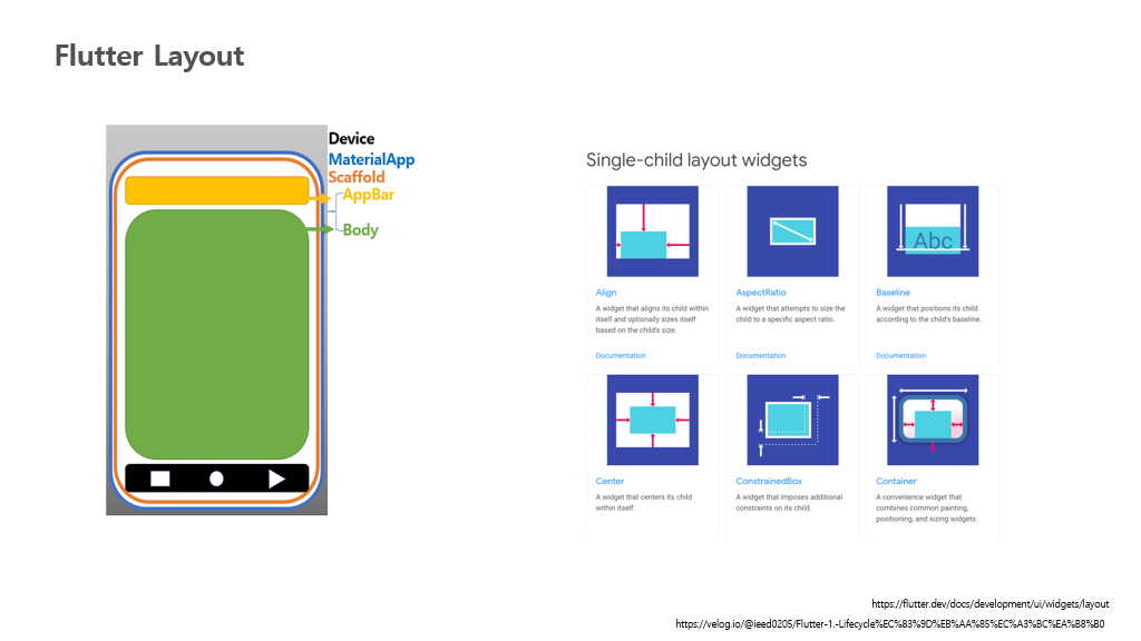 | Flutter의 Layout은 유연합니다. 따라서 디자인을 유연하고, 쉽게 구현할 수 있습니다. |