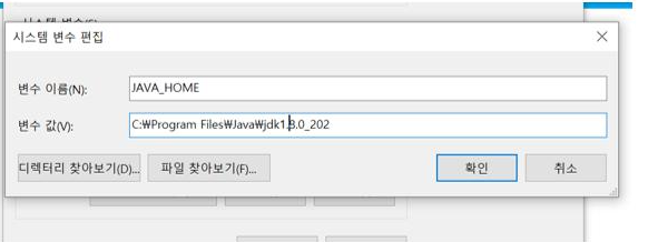 시스템 변수에 JAVA_HOME 환경변수를 추가해준다.