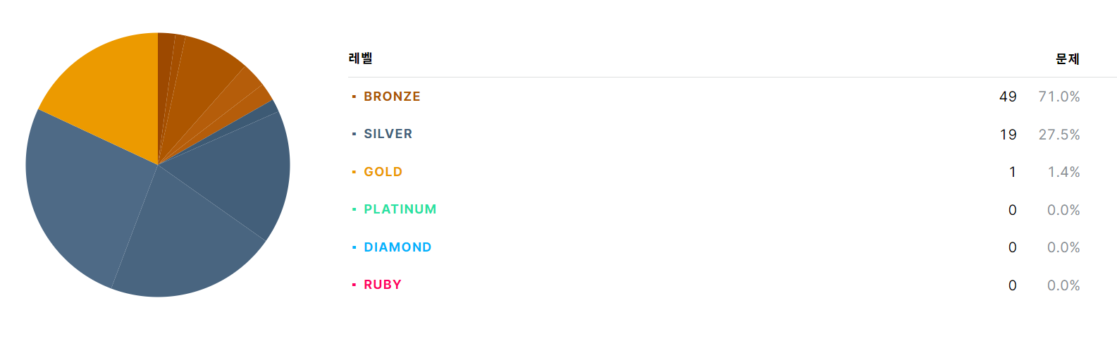 백준 티어도 브론즈일줄 알았는데, 실버 4였다... (푼 문제도 많이 없는데, 그래도 꽤 어려운 문제들은 건드려서 그런강...)