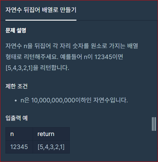 Programmers ] Level 1 - 자연수 뒤집어 배열로 만들기