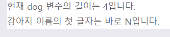 cout << "강아지 이름의 첫 글자는 바로 " << dog[0] << "입니다.";