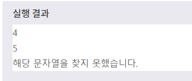 3. 문자열.find(찾을문자열, 시작위치); // 시작 위치부터 찾을 문자열을 찾아, 그 시작 위치를 반환함.