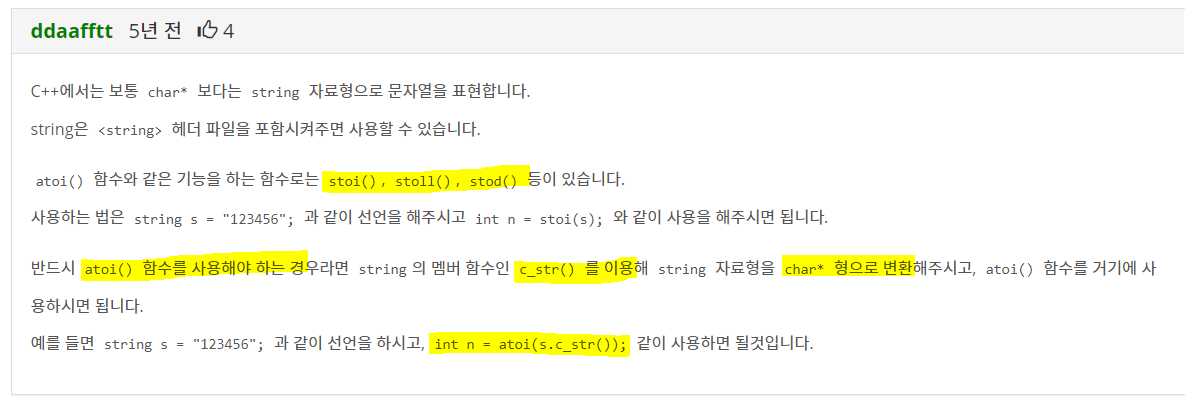 stoi( )를 적용하지 않은 다른 분의 코드를 참고해보았습니다.