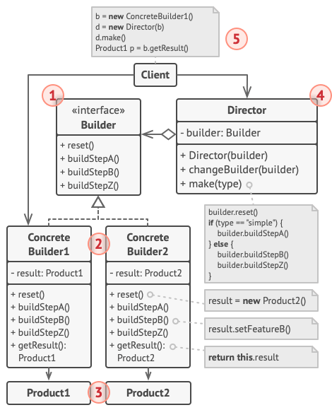 - Director : Builder를 사용해 객체를 생성한다.