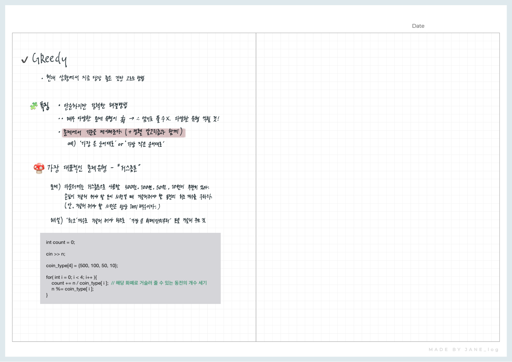 안녕하세요. 이번 시간에는 그리디 알고리즘에 대해 알아보겠습니다. 그리디 알고리즘은 동적 프로그래밍 사용 시 지나치게 많은 일을 한다는 것에서 착안하여 고안된 알고리즘입니다. 동적 프