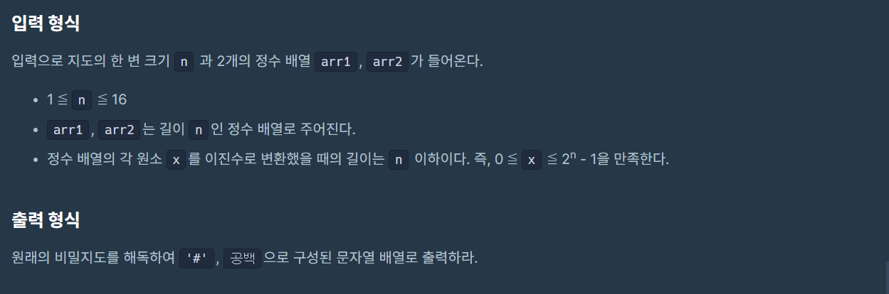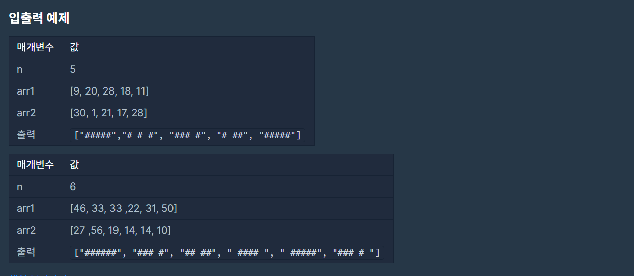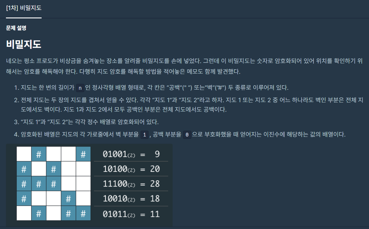 코딩테스트 연습 - [1차] 비밀지도