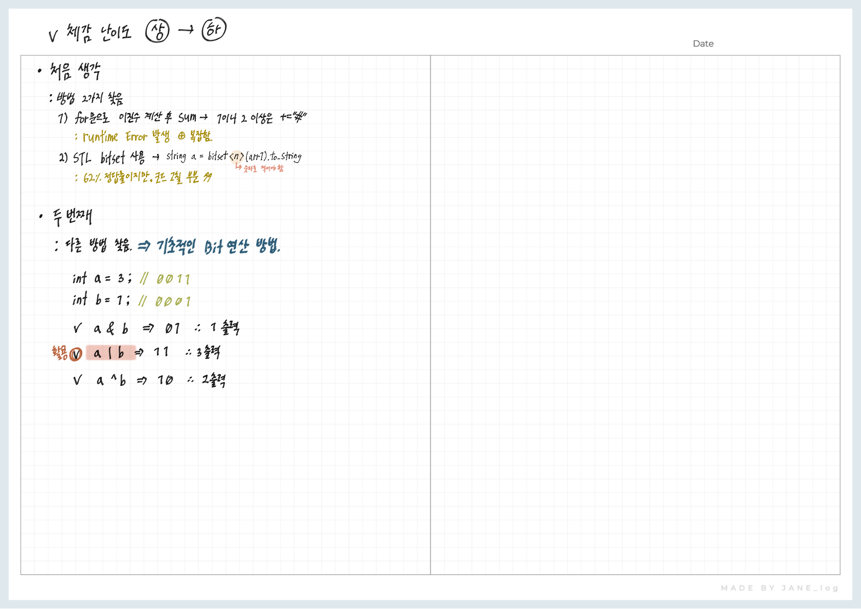 그 후, 비트 연산자를 적용하자 바로 풀렸습니다.