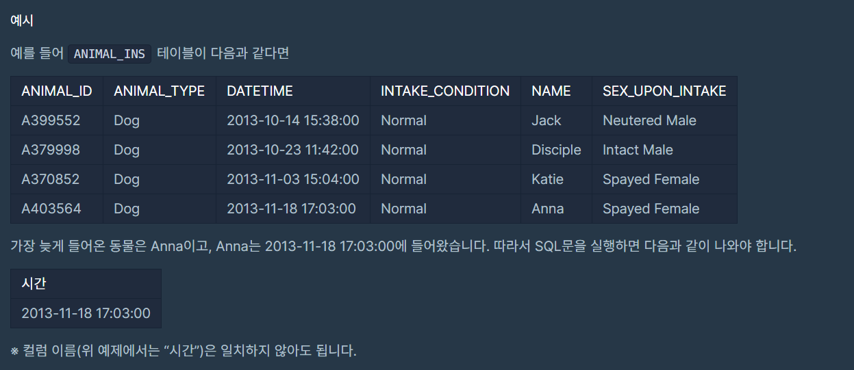 | SQL - SUM, MAX, MIN ] 동물 수 구하기 (0) | 2021.02.26 |