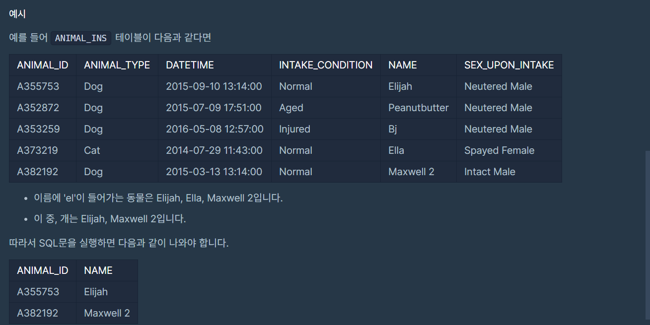| SQL - IS NULL ] 이름이 있는 동물의 아이디 (0) | 2021.02.26 |