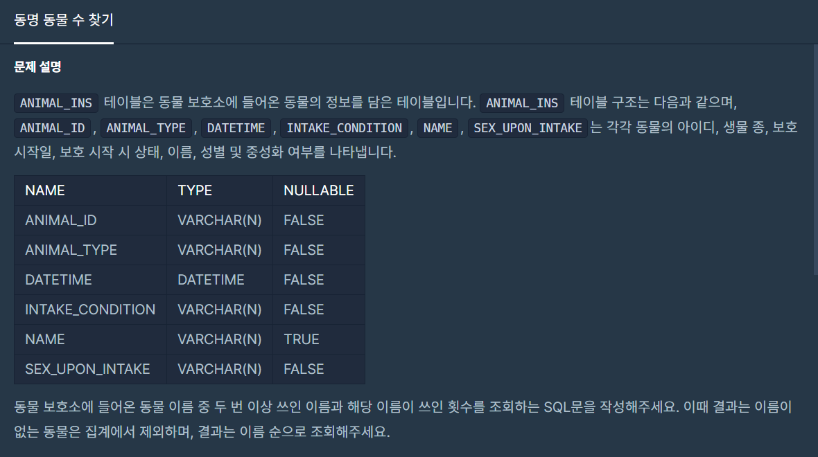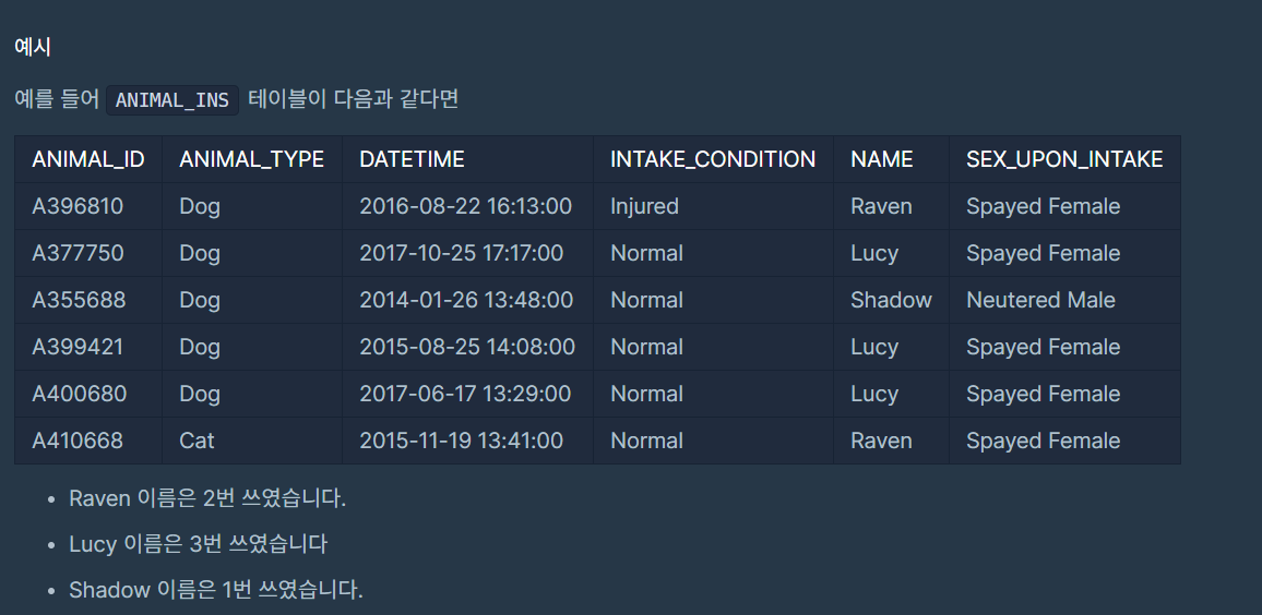 | SQL - GROUP BY ] 고양이와 개는 몇 마리 있을까 (0) | 2021.02.27 |