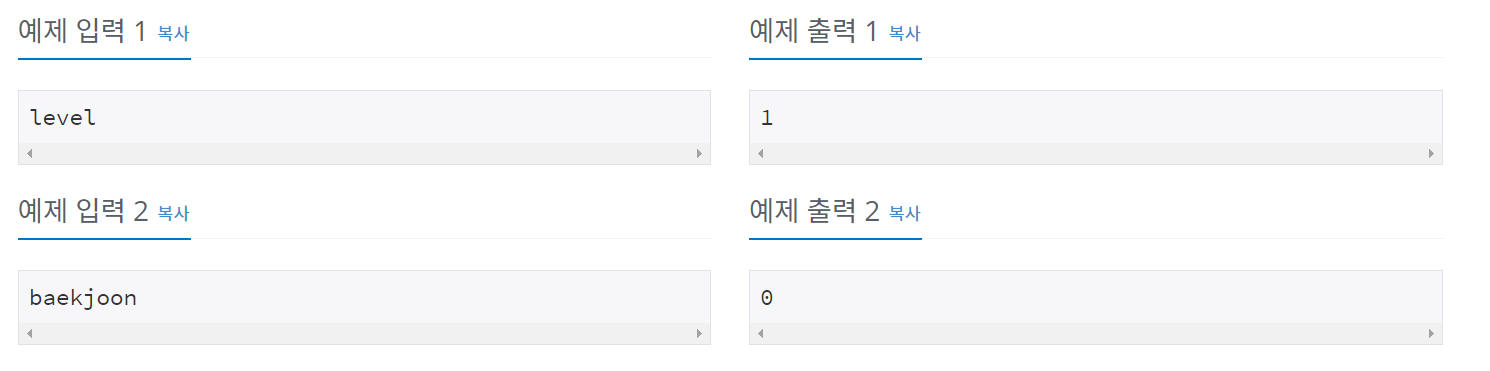 level, noon은 팰린드롬이고, baekjoon, online, judge는 팰린드롬이 아니다.