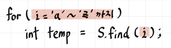 for문에서 'a'부터 'z'까지 반복할 수 있음을 꼭 기억하기.