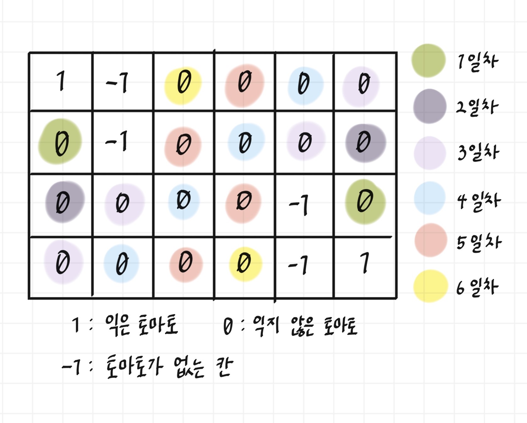 ② -3-(1). 토마토 상자 범위를 벗어나면 무시한다. 또한 상자 안의 원소가 '-1'(토마토가 없으면)이면 무시한다.