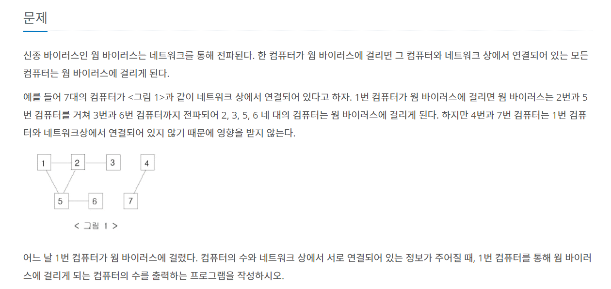 ✔ 1번 컴퓨터가 바이러스에 걸렸으니까 1부터 탐색을 시작한다.