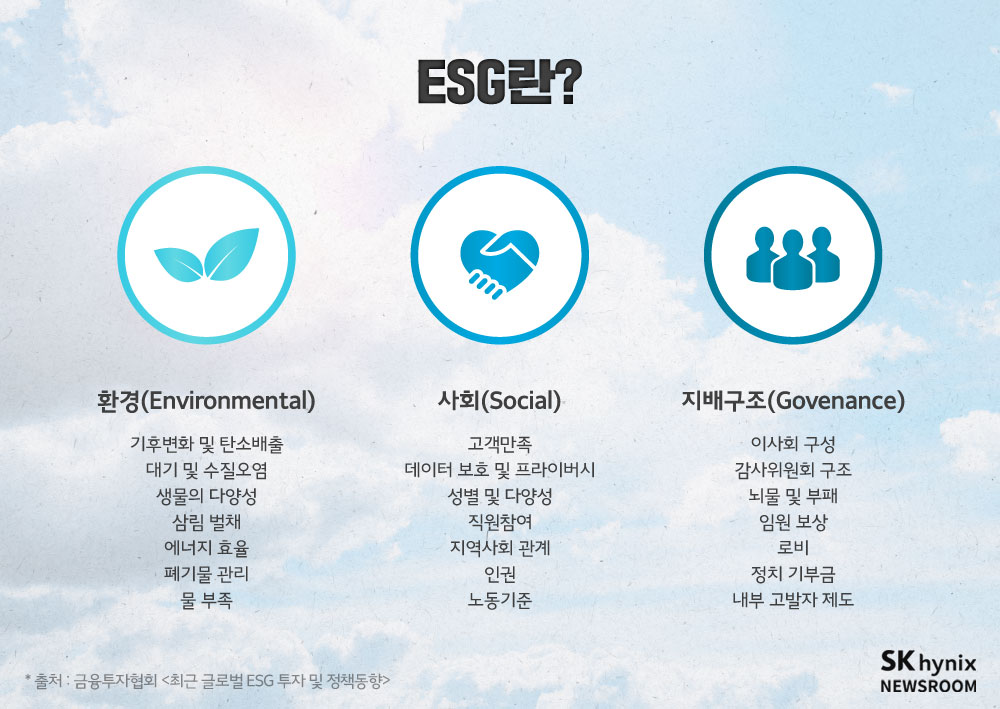 투자자뿐만이 아니다. 최근에는 그린과 환경이라는 단어로 대표되는 공생의 가치를 중시하고 지구를 위한 좋은 제품을 골라 쓰려는 고객이 늘고 있다. 더 좋은 근로환경(Work Environment)을 제공하고 사회에 공헌하는 기업과 일하려는 구성원과 파트너도 늘고 있다.