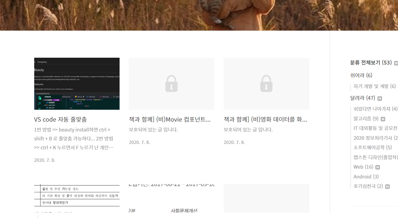 난 위에처럼 비공개 글에 썸네일을 보이게 해놨다.