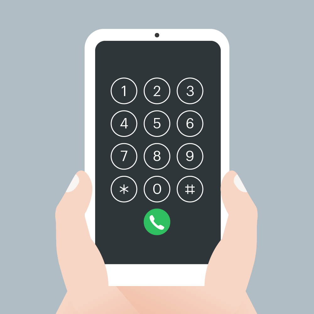 - 가운데 열의 4개의 숫자 2, 5, 8, 0을 입력할 때는 두 엄지손가락의 현재 키패드의 위치에서 더 가까운 엄지손가락을 사용합니다.